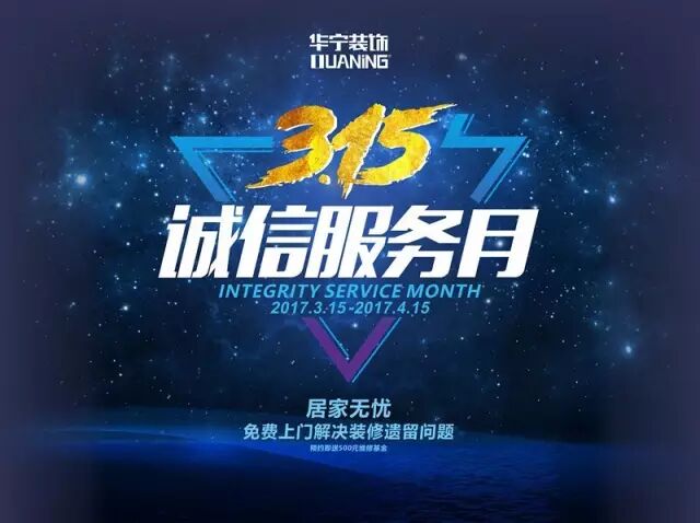 3月15日,华宁装饰2017年“3·15诚信服务月”活动在华宁装饰创意园正式启动,集团各领导出席本次活动启动仪式。