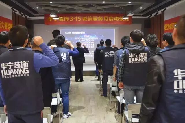 启动会上,华宁装饰集团各领导层带领团队对进行诚信服务宣誓,为客户提供优质的服务!