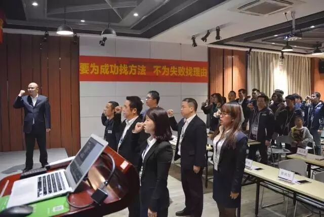 华宁装饰集团总经理刘霖与集团领导层带领惠州团队宣誓▲
